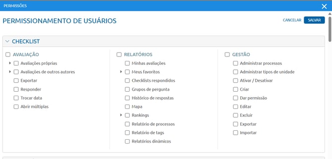 - Acesso a Checklists.