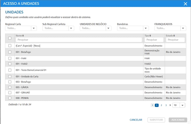 Autorize o acesso às unidades que o usuário necessita consultar.