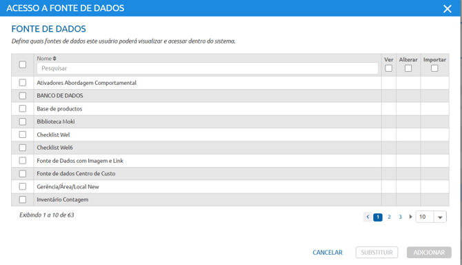 Habilite as fontes de dados às quais o usuário deve ter permissão.