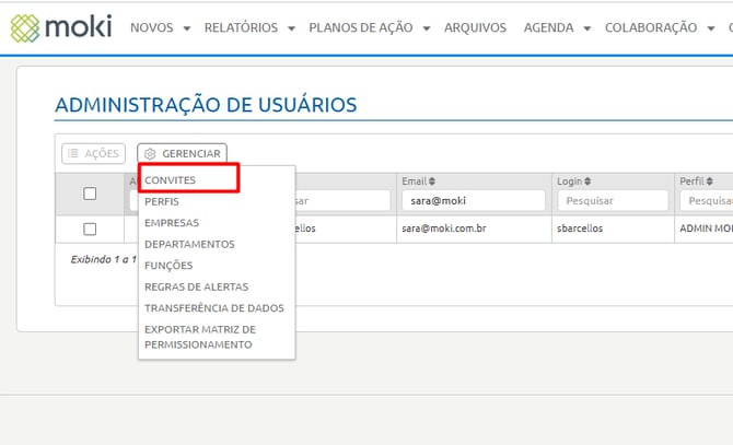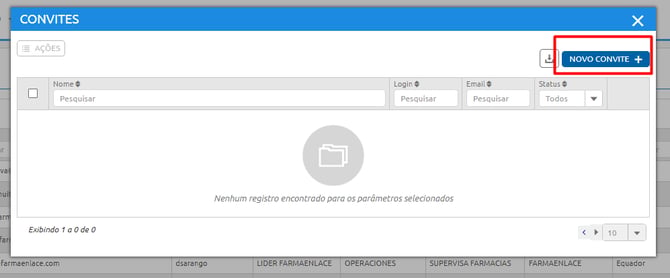 Após clicar em Convites, selecione a opção Novo Convite — indicada em vermelho na imagem abaixo.