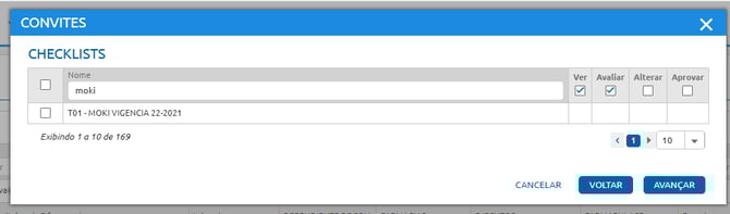Ao clicar na seta da opção Checklists, por exemplo, serão exibidas todas as permissões relacionadas a esse módulo. Você deverá selecionar apenas aquelas às quais o usuário precisa ter acesso. O mesmo processo deve ser repetido para os demais módulos e funcionalidades do sistema.