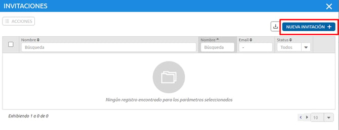 La funcionalidad Invitaciones permite invitar a usuarios a acceder a la plataforma. El usuario invitado también puede ser responsable de completar su propio registro después de recibir la invitación por correo electrónico, siempre que, en el momento de la creación de la invitación, se completen únicamente los datos obligatorios.
