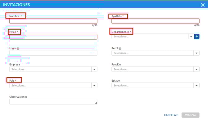 Finalmente, haga clic en Avanzar y Guardar. La invitación se generará automáticamente y el usuario recibirá por correo electrónico las instrucciones necesarias para acceder a la plataforma y completar su registro.