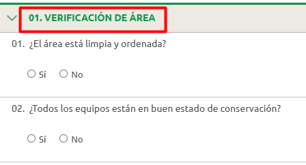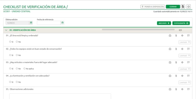 - Unidad/ubicación donde se ejecutará la lista de verificación/formulario.