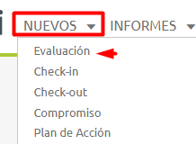 1. En el menú principal, acceda a la opción Nuevos > Evaluación.