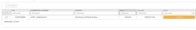 - Encuentre la lista de Checklist/formulario que se realizará en una unidad/ubicación.