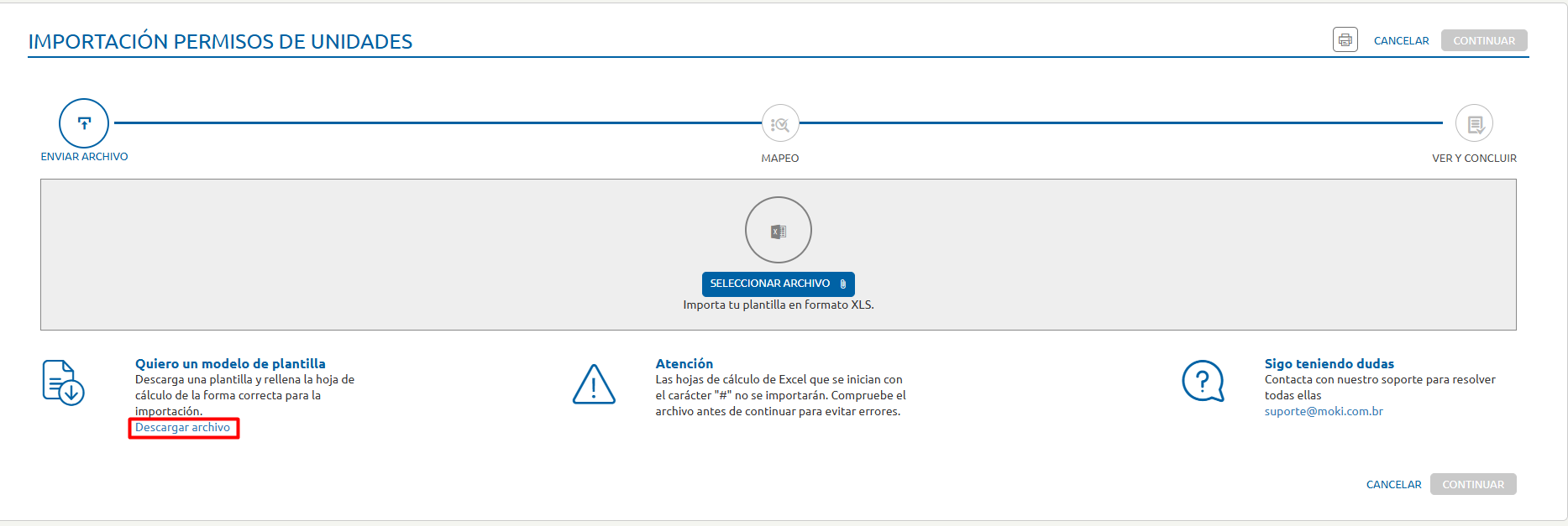 Si no tienes el archivo, puedes descargarlo desde la página de importación.